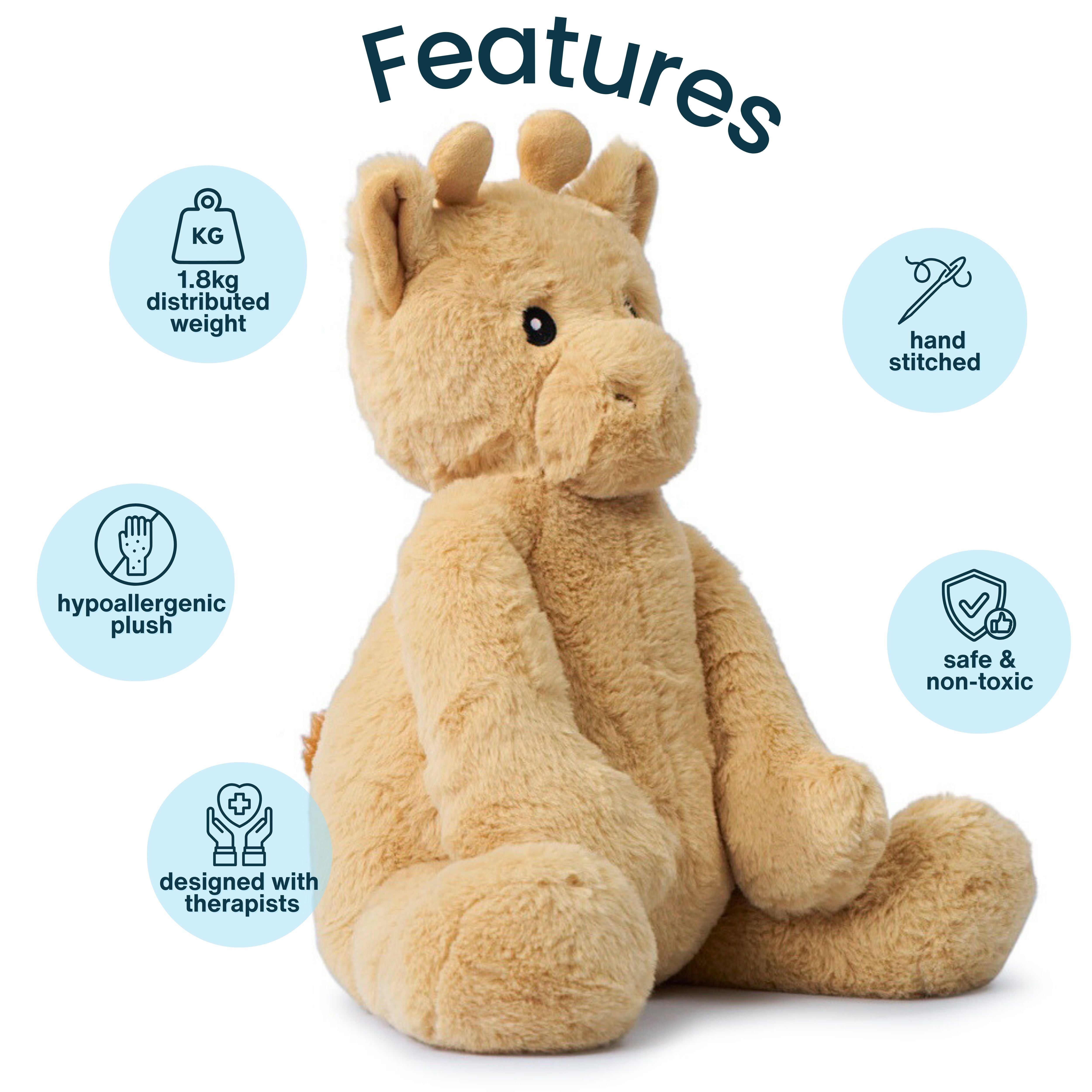 Its key feature is the gentle distributed weight, which evokes calmness and focus, mimicking the soothing sensation of a hug. Ideal for anyone seeking a sense of security during overwhelming times, it combines therapeutic benefits of weighted pressure with the familiar charm of a stuffed animal.